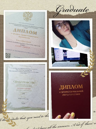 Ирина успешно защитила диплом — по видеосвязи — и получила диплом государственного образца. В подарок от колледжа она прошла программу профпереподготовки и получила еще один диплом, по спортивному направлению.